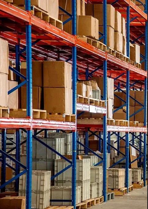 倉庫貨架立柱為藍(lán)色,主要起承重和固定作用,橫梁為橘黃色,主要起承載托盤的作用。藍(lán)色是非常沉穩(wěn)的顏色,具有緩解焦躁的作用,有效降低作業(yè)人員在重復(fù)的操作中可能形成的疲勞感;而橘黃色是非常醒目且活躍的顏色,有著讓人積極快樂、增強活力的功能,且藍(lán)色與橘黃色是對比色,在叉車工作時能很好地辨識托盤位置,準(zhǔn)確碼放貨品,保障貨品的存取安全。