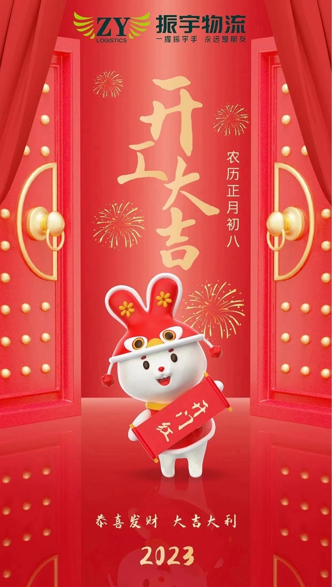 振宇物流集團(tuán)將于2023年1月29日(正月初八)正式開(kāi)工,全體員工已迅速進(jìn)入工作崗位,所有車輛整裝待發(fā)。在新的一年里將以嶄新的面貌繼續(xù)為您提供優(yōu)質(zhì)的物流與供應(yīng)鏈服務(wù),歡迎廣大客戶朋友提前做好收發(fā)貨安排。